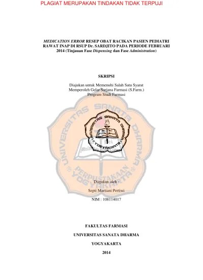 Studi kasus medication errors di ruang rawat inap rsi ngk satifah elfiansih, qurrotul aini, sabtanti harimurti program studi manajemen rumah sakit, .